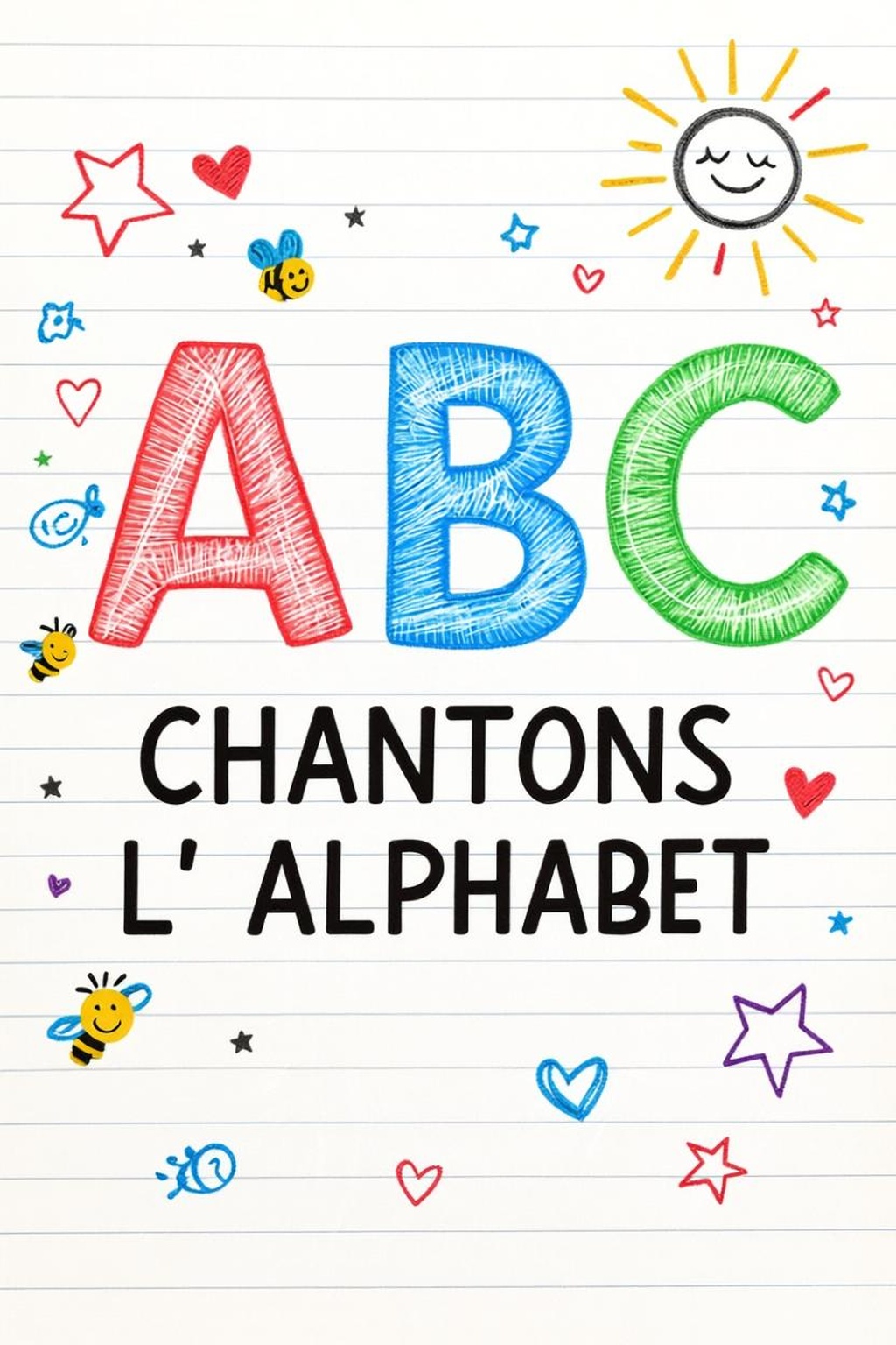 Apprendre l’Alphabet en Chanson (A ร Z) – Chaque lettre apparaรฎt sur une feuille blanche lignรฉe, dessinรฉe au marqueur ou au crayon de couleur, accompagnรฉe dโillustrations simples pour aider les plus petits ร mรฉmoriser facilement les lettres….
