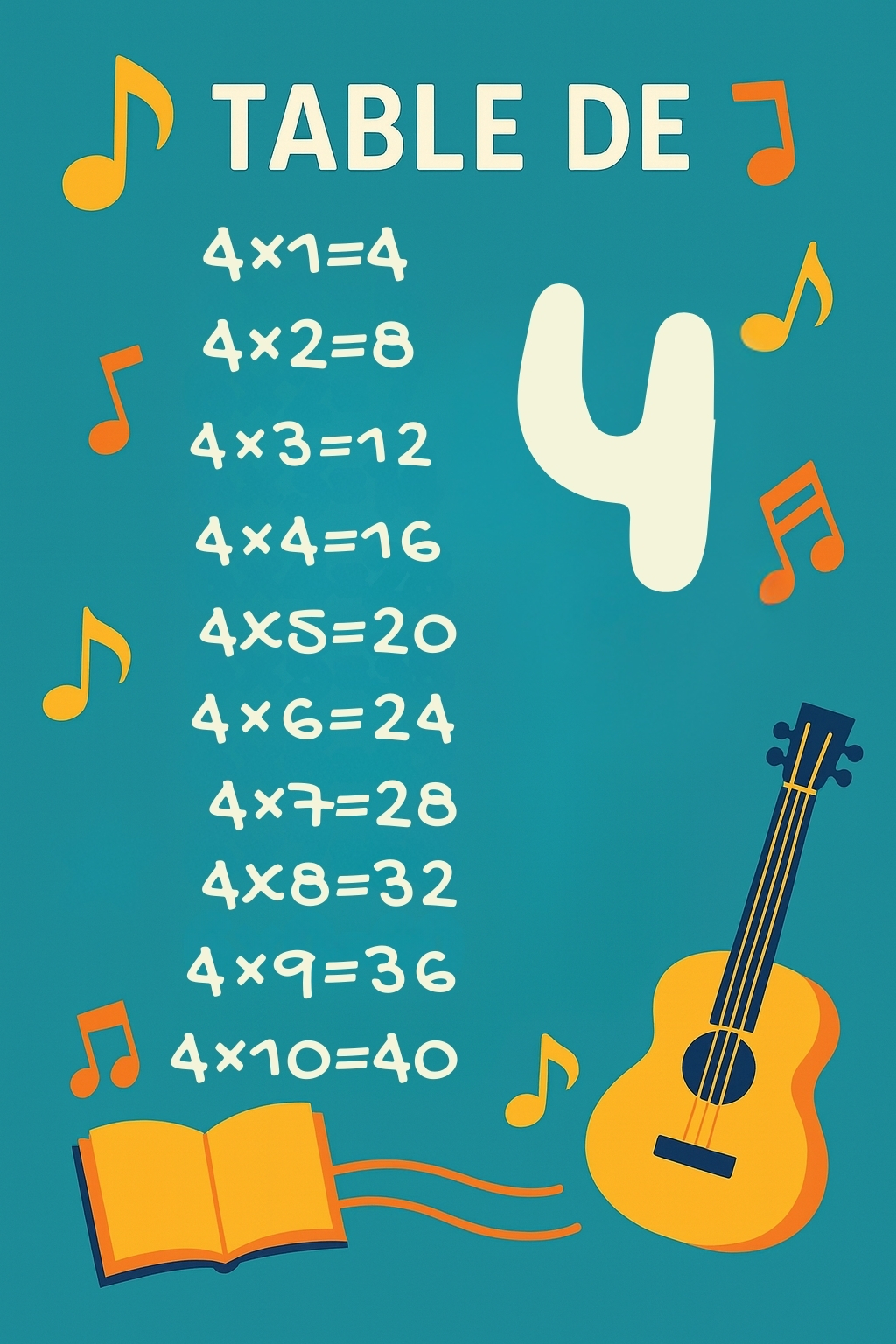 Apprendre la table de 4 grรขce ร des images ludiques sur le thรจme de lโรฉcoleโฆ